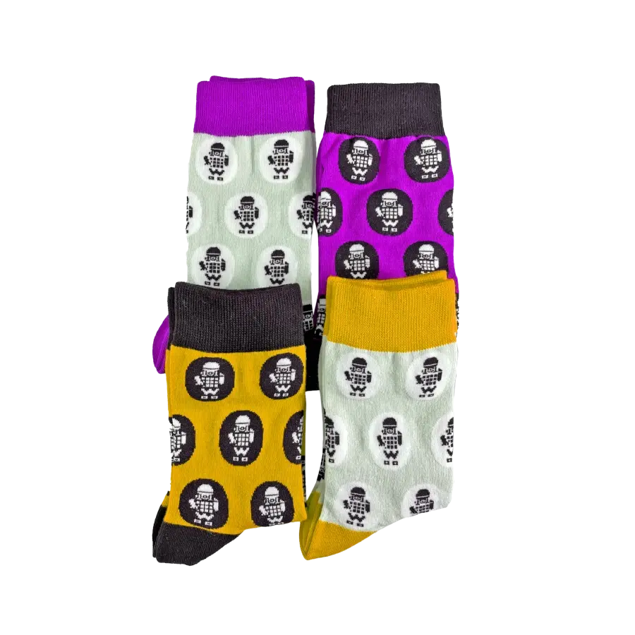These 100% custom-made jacquard/knit socks are crafted on machines with 168 up to 200 needles. They are premium quality and can be custom-knitted with complex logos and patterns.